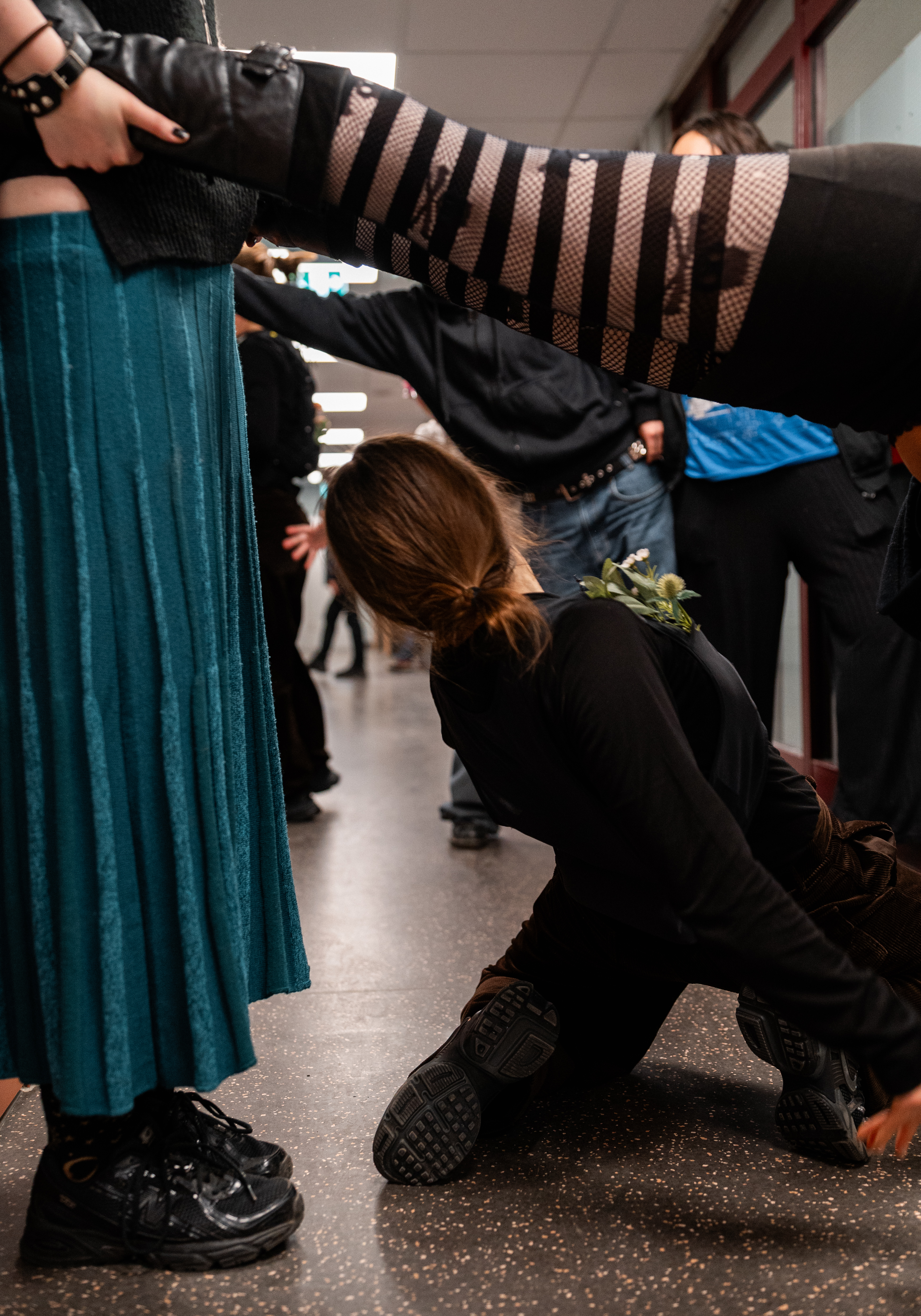 Dansarna både ingår och poppar ut från skolmiljön. De rör sig mellan skåp, vid matsalen, i foajén och upp- och nedför trappor likt en sorts mänskliga forskningsstationer som var och en är en mobil ljudkälla. Utan att tränga sig på låter DM danskonst bli ett alternativ till rastens väntande, scrollande, eller försök att få tiden att gå. Vad händer när dans gästar lunchrasten – mellanrummet där förmiddag blir till eftermiddag – och möter dig i det mest vardagliga?